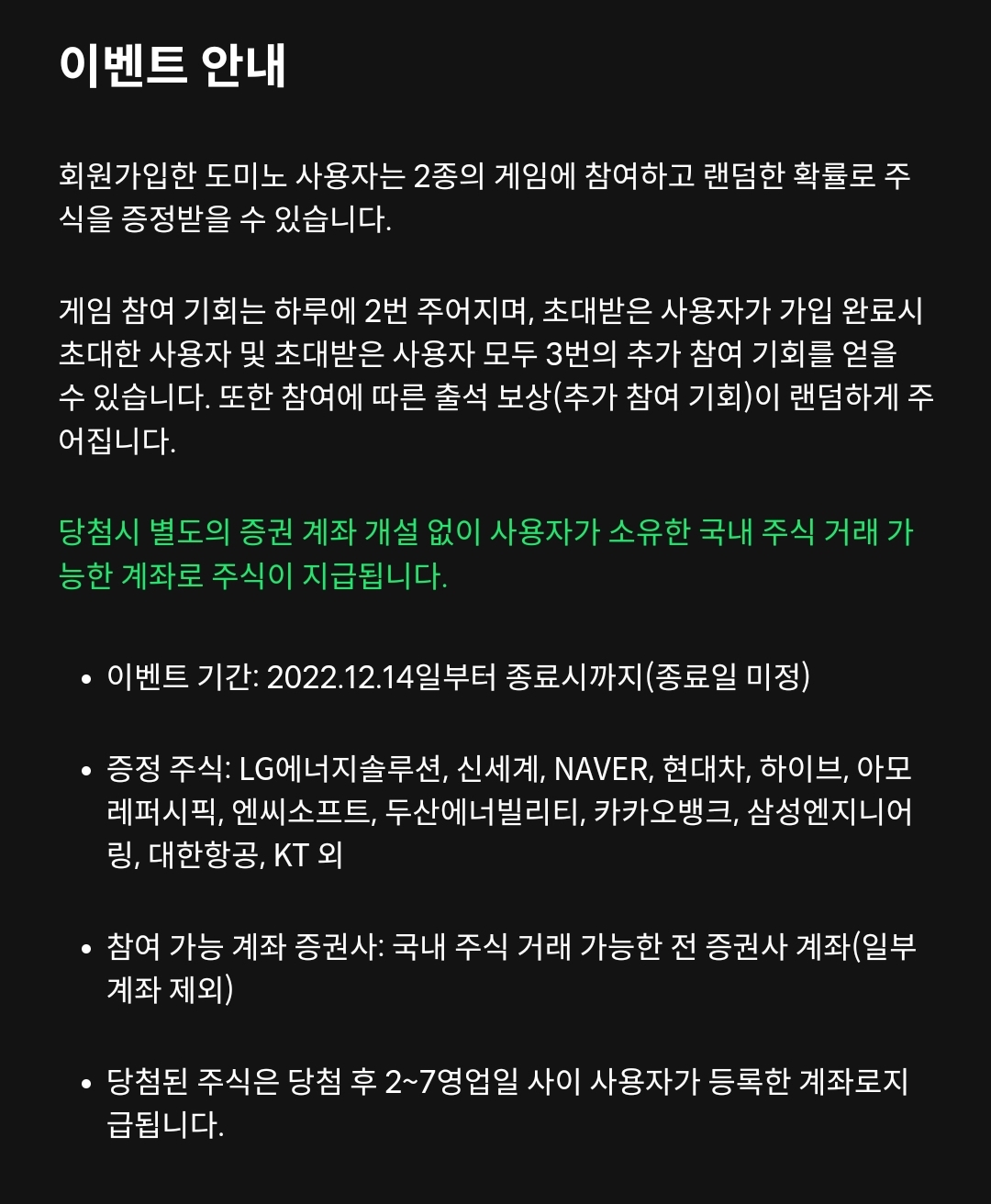 현재 '매일매일 주식리워드' 이벤트를 진행 중입니다. 22/12/14일 부터 진행중이었네요.